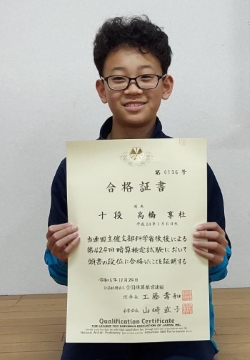 | 424回全国珠算教育連盟暗算検定試験 十段合格 橋享杜 |